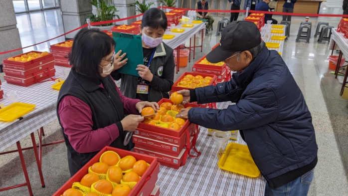 【記者林獻元台中報導】為提升台中市茂谷柑果品品質及食用安全,讓消費者安心選購在地優質的農特產品,並建立台中市優質茂谷柑市場品牌,台中市政府農業局輔導東勢區農會27日在市府陽明市政大樓1樓大廳舉辦「113年度台中市優質茂谷柑果品評鑑活動」,此次共計60組農友報名參賽,最終由石岡區涂文庭勇奪冠軍殊榮。