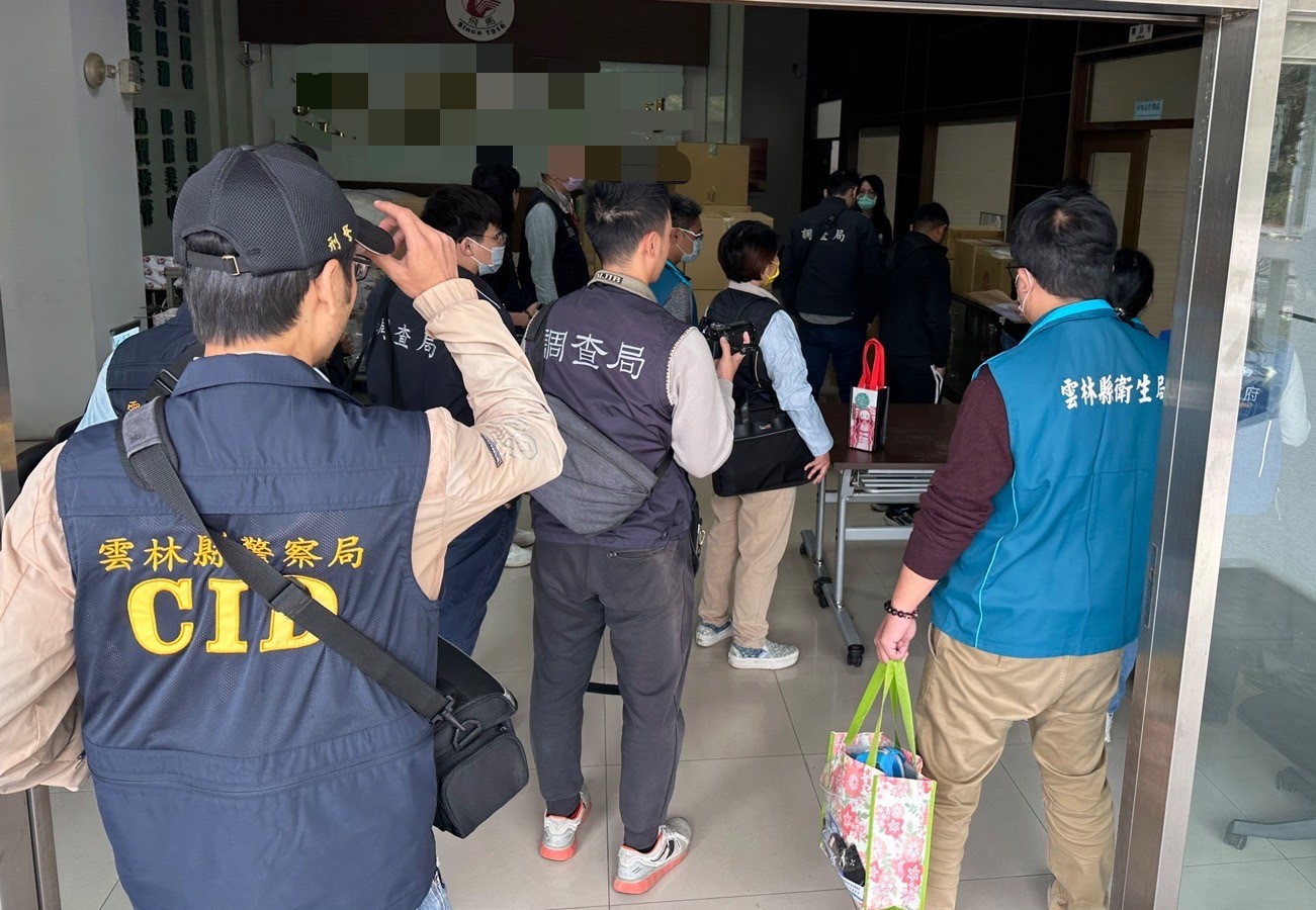 雲林地檢署檢察官周甫學指揮法務部調查局雲林縣調查站、雲林縣警察局及雲林縣衛生局成立專案小組進行調查。(雲林地檢署提供)