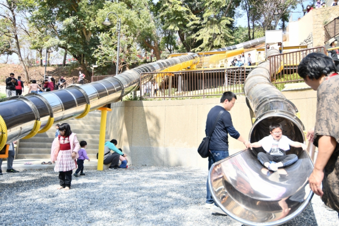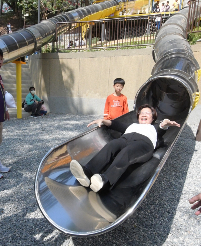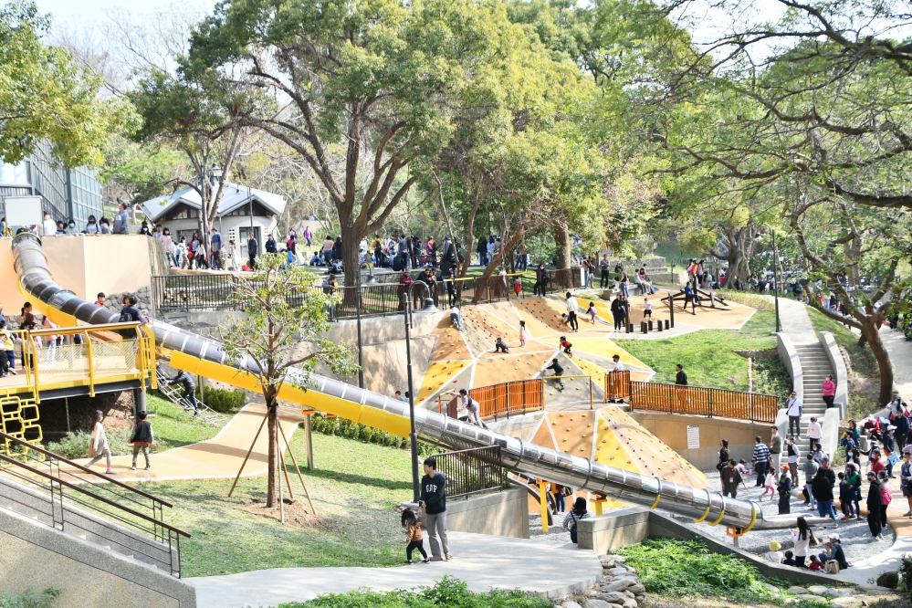 王縣長表示,八卦山大佛綠地森呼吸園區,以「簡單、自然、好用」為原則,去除不必要人工設施,將原本過多的混凝土舖面敲除,移除病蟲害和生長不當喬木外,保留多數喬木大樹,給適當疏植,增加園區通透性,並在草皮新植大約3324平方公尺,灌木46000株,讓園區整體綠覆率從原有的68%,提高至75%,整體公園改善面積2.2公頃,園區內打造二座溜滑梯,其中一座滑道高低差8.5公尺、長度27公尺,為縣內滑道最長,高低差最大的滑梯。另一座溜滑梯高差6公尺、長度18公尺,好玩刺激,期望串聯卦山村、天空步道、成功營區綠色學習園地、台語文創意園區和美學館,打造八卦山風景區新亮點。