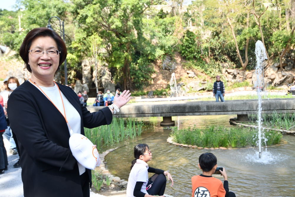 王縣長指出,縣府打造共融式公園,從第一座員林兔馬鹿公園、田尾怡心園和八卦山大佛綠地森呼吸森,還有伸港鄉慶安水道旁新打造「嬉濱海豚公園」,將在3月2日啟用,是一座設寵物園區、越野單車PUMP TRACK場地和海洋造型遊具設施多功能濱海公園,並發放1000個紫色多多龍小提燈。