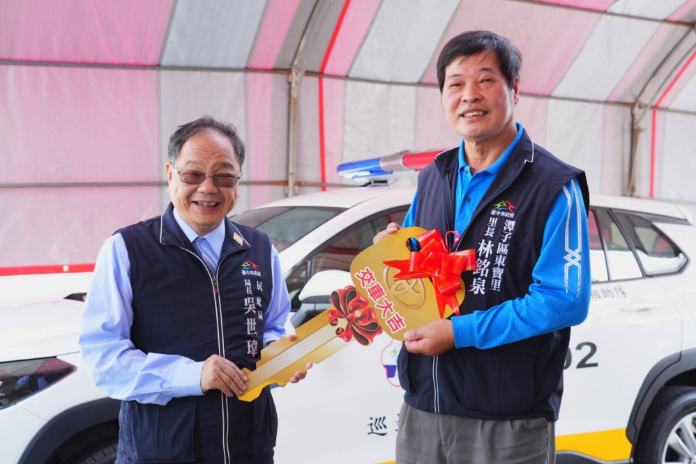 市府民政局長吳世瑋代表市長盧秀燕主持交車儀式,期盼全新巡邏車強化守望相助隊員執勤安全性,提升隊員巡守勤務效能,強化鄰里安全,讓市民更安心生活。立法委員楊瓊瓔、市議員蕭隆澤、民政局長吳世瑋、潭子區長劉汶軒、東寶里長林銘泉及東寶里守望相助隊員等均到場;市議員賴朝國、吳呈賢、羅永珍、周永鴻及徐瑄灃也派員到場致意。