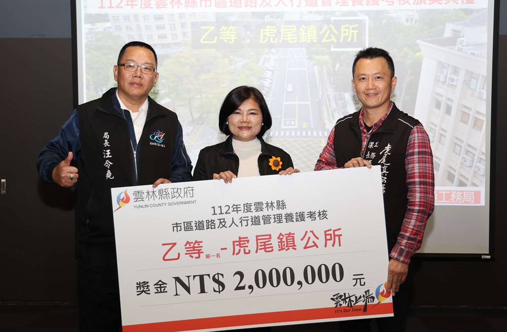 縣長張麗善頒獎表揚市區道路及人行道管理養護考核乙等-虎尾鎮公所,獲得獎金200萬元。