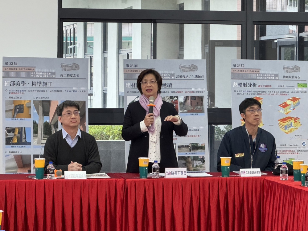 王縣長表示,上任後重視公共工程品質,從工程規劃設計到施工等各階段,均加強審查和督導,並以追求國家工程最高榮譽的﹁金質獎﹂為努力目標。