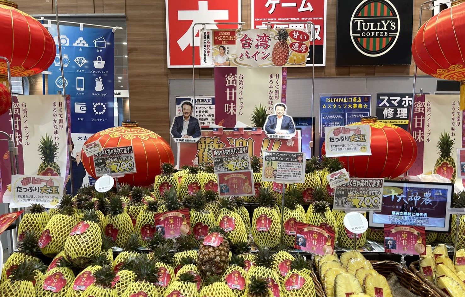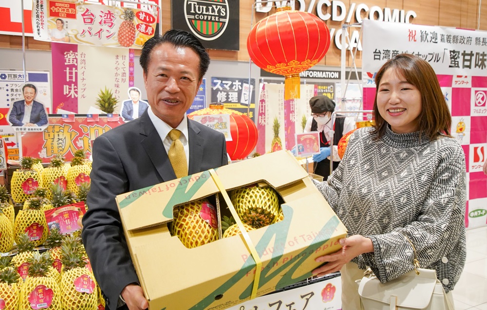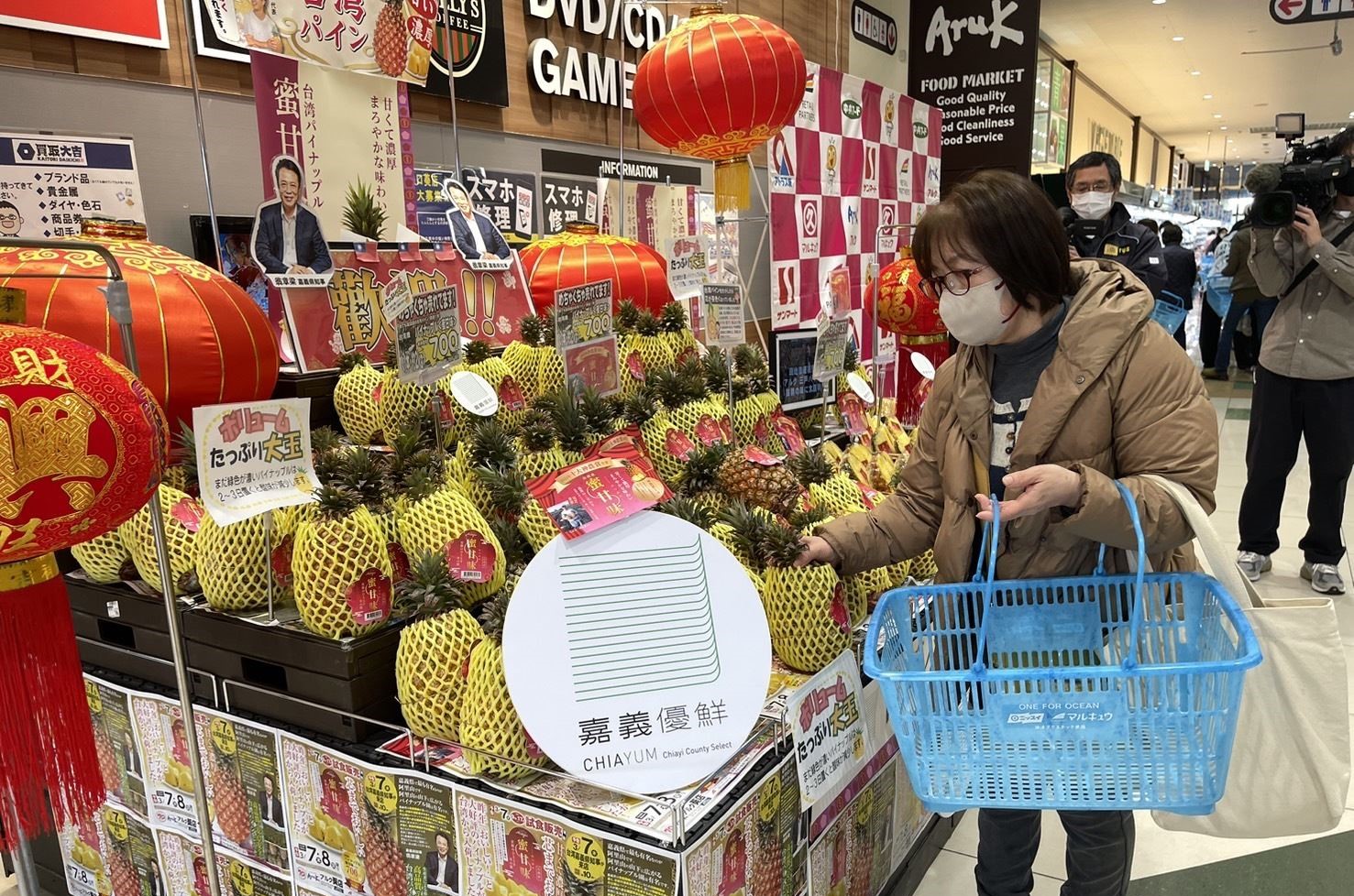 嘉義縣政府持續與山口縣最大連鎖丸久超市合作,成功推廣「蜜甘味」嘉義鳳梨。(嘉義縣政府提供)