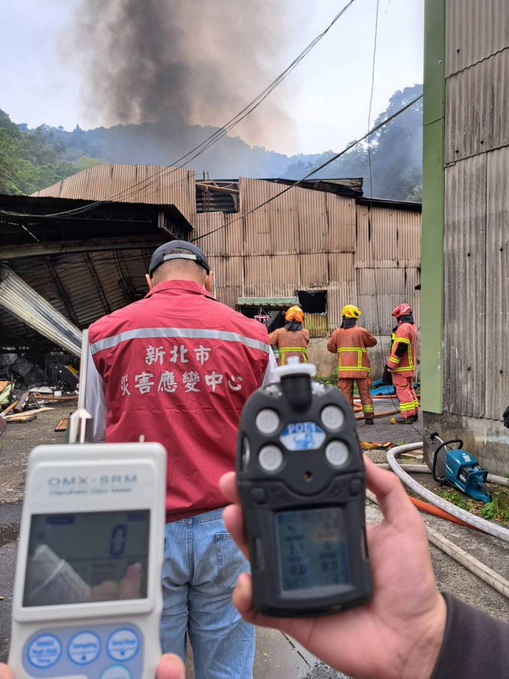 【記者高金次新北報導】3月11日9時樹林區光興街工廠火災,新北環保局表示,接到通報後第一時間已到火災現場監測空品,依據手持設備量測風速為0m/s,電子鼻讀值為0,四相氣體偵測儀數值包含二氧化硫=1.2,揮發性有機物=0,氨=0,硫化氫=0。環保局表示,目前現場無濃煙及異味,大氣擴散條件也改善,環保局將持續監控空品變化,請民眾放心。
