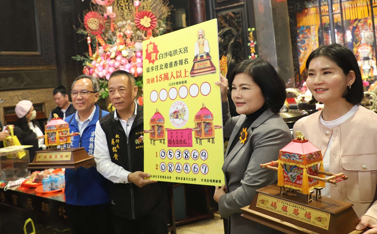 【記者蘇榮泉雲林報導】苗栗縣白沙屯媽祖、山邊媽祖北港進香活動即將在本月18日啟程,今年報名隨香的信徒人數超過17萬,引起廣泛關注。為了感謝信徒的支持,雲林至善文化協會製作了一尊交趾陶媽祖及粉紅超跑迷你神轎等結緣品,並於北港朝天宮舉行了灑淨祈福儀式。當天,縣長張麗善應邀參與祈福儀式,並抽出2名獲得粉紅超跑迷你神轎的幸運信徒,共同邀請大家在23日一同迎接白沙屯媽、山邊媽,共同迎接好運。