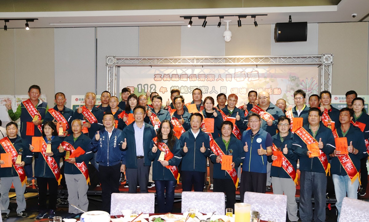 有清潔隊員的付出,嘉義縣巷弄鄰里間也越來越乾淨,縣長翁章梁為表達肯定,11日由環保局舉辦春酒感恩餐會,宴請全縣6百多名清潔隊員,同時表彰112年度31名突出的模範清潔人員,其中2名更代表本縣榮獲全國模範清潔楷模,他們不僅在日常工作表現優異,且服務年資超過5年,充分展現對熱情。