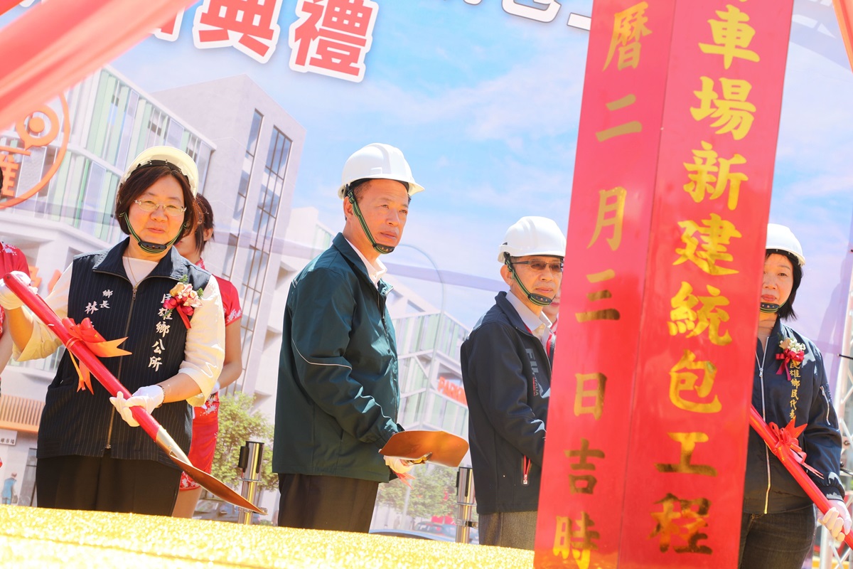 【記者蘇榮泉嘉義報導】民雄市場用地停車場新建工程12日上午舉行開工動土祈福典禮,縣長翁章梁、民雄鄉長林于玲、交通公路局雲嘉南區養護工程分局長郭清水、經濟部工商輔導中心主任雲瑞龍等各級民代貴賓皆出席參與。