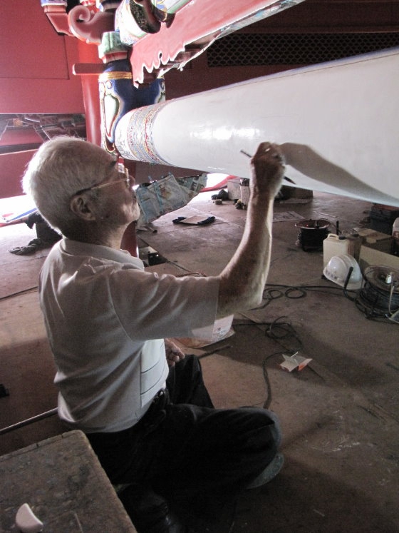 文化部進一步指出,傳統建築彩繪施作,需要繁複步驟與嚴謹技術。「彩」是指在建築構件的外表,或是石灰牆的壁面上,進行「披麻捉灰」的施工程序,話稱為「地杖」;「繪」則是在地杖處理完成後,進行繪圖著色工作,為藝師展現書畫藝術的重要技藝。