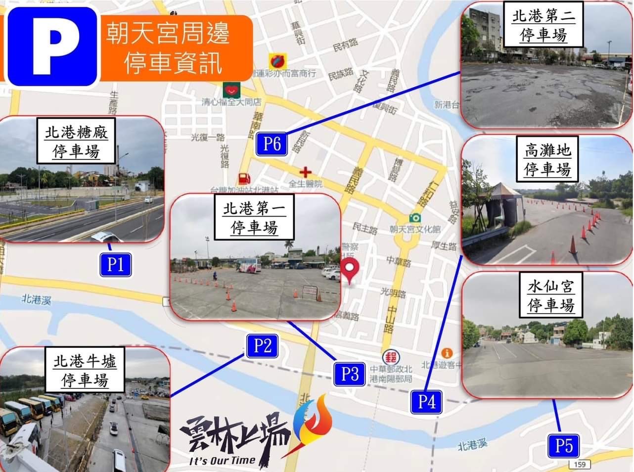北港分局期前與北港鎮公所、朝天宮協調後,預先規劃車輛臨時停放地點。