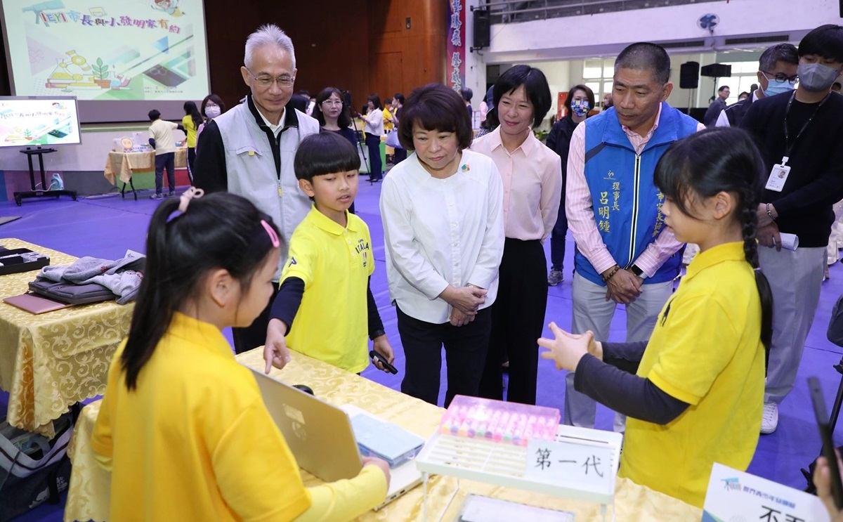 嘉義市長黃敏惠到場聆聽小發明家的創作動機與成果。