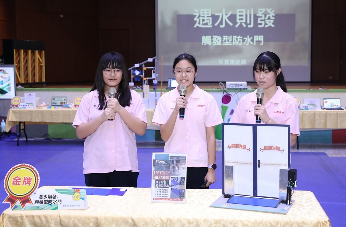 代表臺灣參加國際賽且榮獲金牌的兩組嘉義市隊伍到場介紹傑出的作品。
