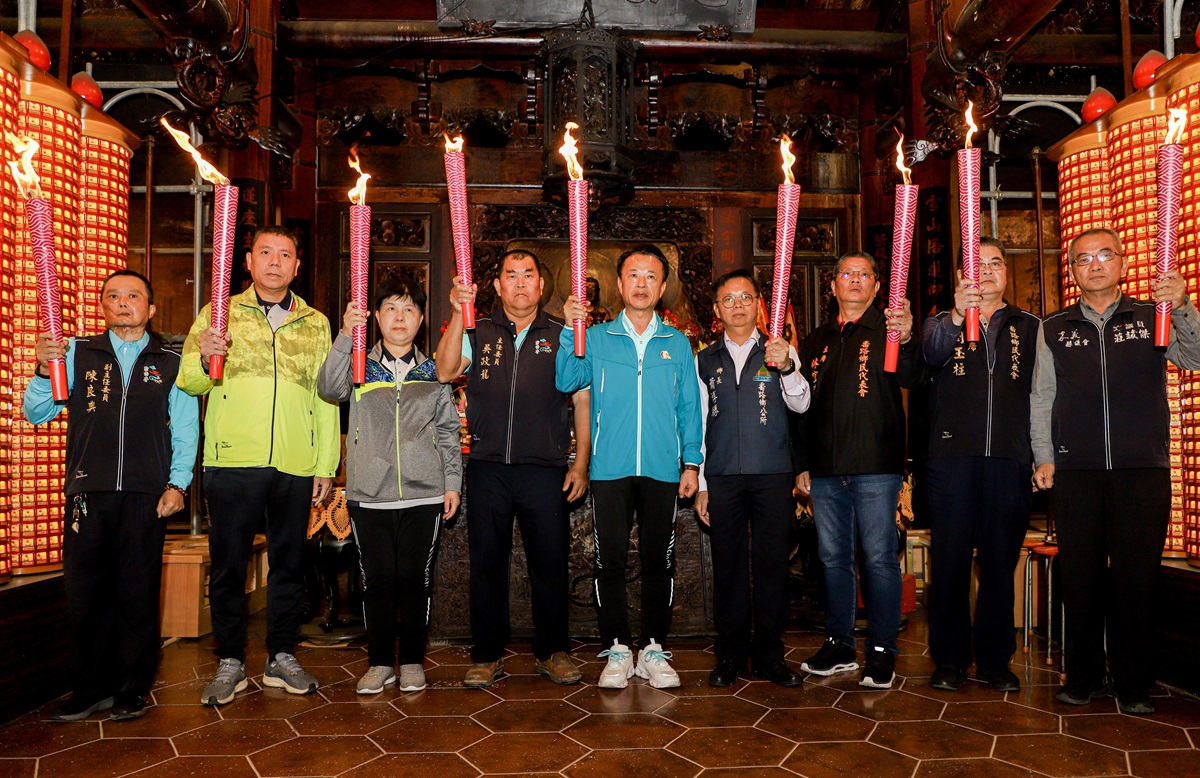 聖火今日從紫雲寺出發,接連3天繞行全縣18鄉鎮,藉紫雲寺觀世音菩薩庇佑下,讓比賽選手們發揮實力,展現亮眼成績。(記者蘇榮泉攝)