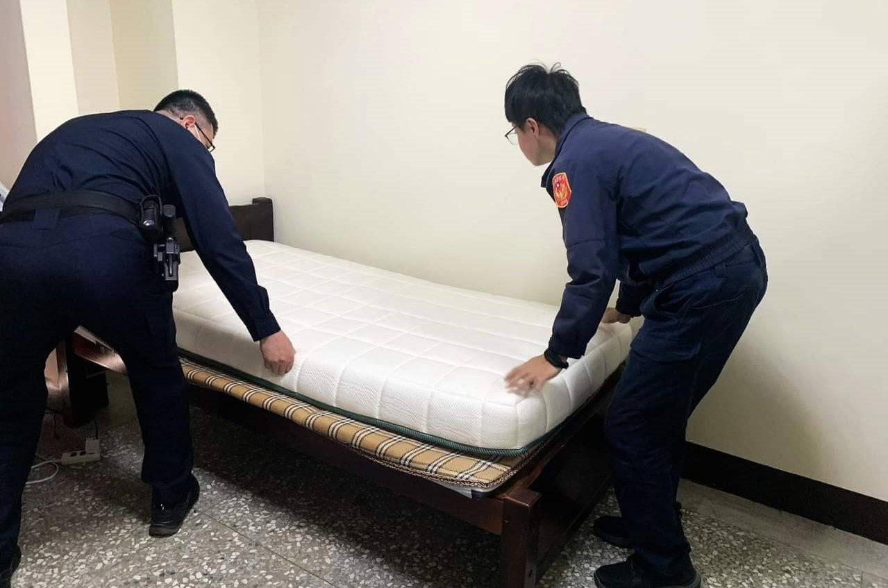 派出所員警拿到舒適的新床墊都相當開心,立即開箱鋪床。