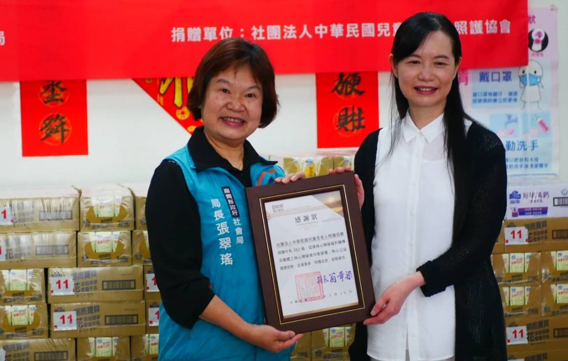 「社團法人中華民國兒童及老人照護協會」捐贈牛乳352箱予嘉義縣身心障礙福利機構及團體。