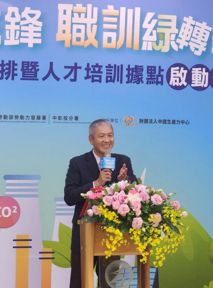 勞動力發展署長蔡孟良致詞時表示,因應綠色產業興起帶動綠色人才需求,目前正積極布局協助勞工職業訓練及企業人才培育輔導服務。中彰投分署推動兩大計畫並多面向啟動綠領人才培育,於自辦訓練課程全面納入淨零碳排課程及打造減碳實作場域,以強化育成勞工專業與淨零碳排意識的跨域技能。