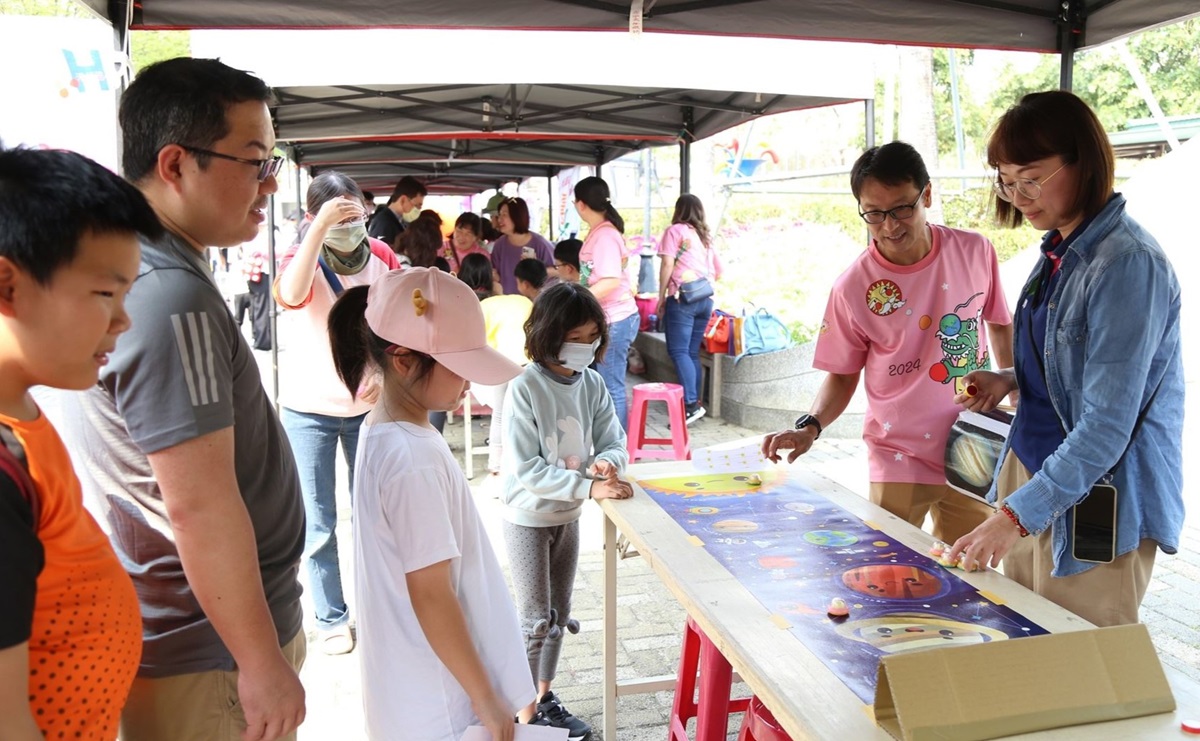 教育處郭添財處長解釋了今年活動的主題「春分一到日夜分,彗星一笑幸福繞」。彗星由冰雪和灰塵組成,本身不會發光,但在靠近太陽時會形成彗尾,在陽光的照耀下閃耀光芒,猶如微笑的弧度一般。現場聚集40個以天文科學為元素的攤位,通過趣味的闖關遊戲和問答,讓參與的親子們不僅在遊戲中學習到豐富的天文知識,還可以在完成闖關後獲得精美的天文小禮物,既享受了樂趣,也增長了見識。