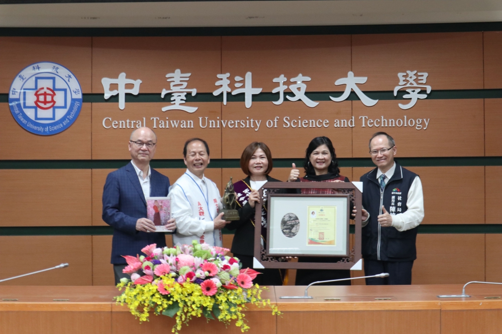 中臺科技大學配合周大觀文教基金會,於中臺科大校園辦理公益表揚活動,台中市社會局陳坤皇副局長、Hi Q中華海洋生技陳樹人總經理、周大觀文教基金會周進華創辦人、唐寶寶大器樂團等貴賓蒞臨校園,一同讚賞逆境重生李鳳珠媽媽成為全球熱愛生命獎章的一份子。