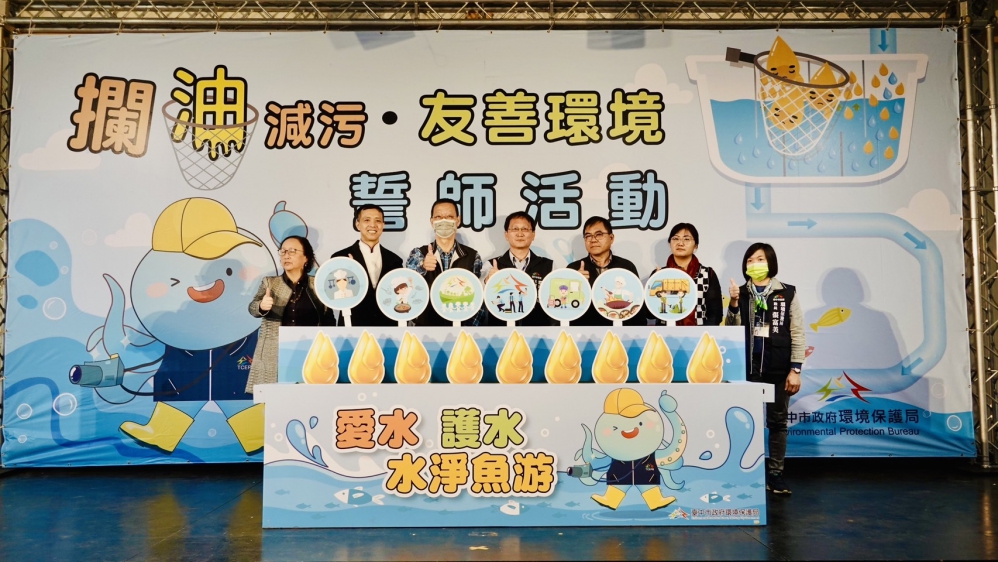 【記者林獻元台中報導】為響應聯合國322世界水日(World Water Day),台中市政府環保局19日在台中清淨園區舉辦「攔油減污‧友善環境」誓師活動。台中相關餐飲工會、環保局工會及清潔隊員在現場齊聚,共同宣誓輔導台中市餐飲業者設置油水分離設施及定期維運清理,實現「愛水、護水、水淨魚游」的目標。