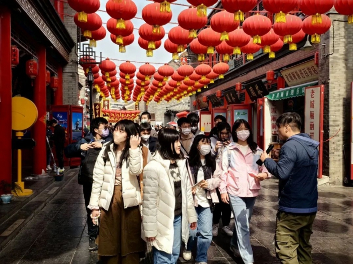 12名臺灣「青」年(首來族)在這個「春」天與天津碰撞火花、同話夢想,走進非遺,古味津韻,文化傳承。南山中學師生們來到古文化街,感受「津門故里」延續著的城市文脈和傳統文化魅力。