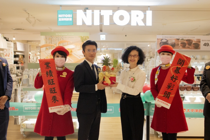 豐原太平洋百貨宜得利家居,22日上午11點於5F進行開幕剪綵儀式,雙方董事長歡慶開幕互贈菜頭鳳梨預祝開幕好彩頭、業績旺旺來和花禮以表業績大發。