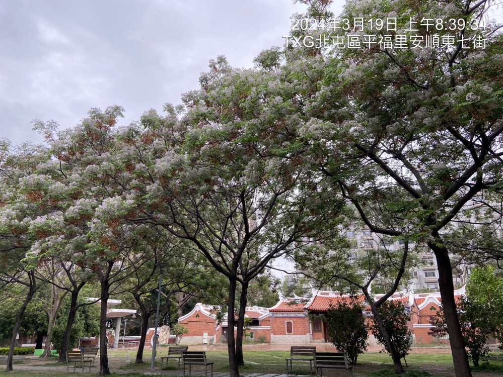 【記者林獻元台中報導】台中市長盧秀燕「讓城市幸福蛻變」!春日百花盛開,繼黃花風鈴木、櫻花之後,淡紫花的苦楝樹也已悄悄綻放,市區人行道及公園綠地處處可發現苦楝樹開花的蹤影,淡淡的清香隨風飄散,目前正陸續盛開中,開花期預計到4月底,市府建設局歡迎民眾把握花季到公園散步,坐在樹下享受愜意時光。