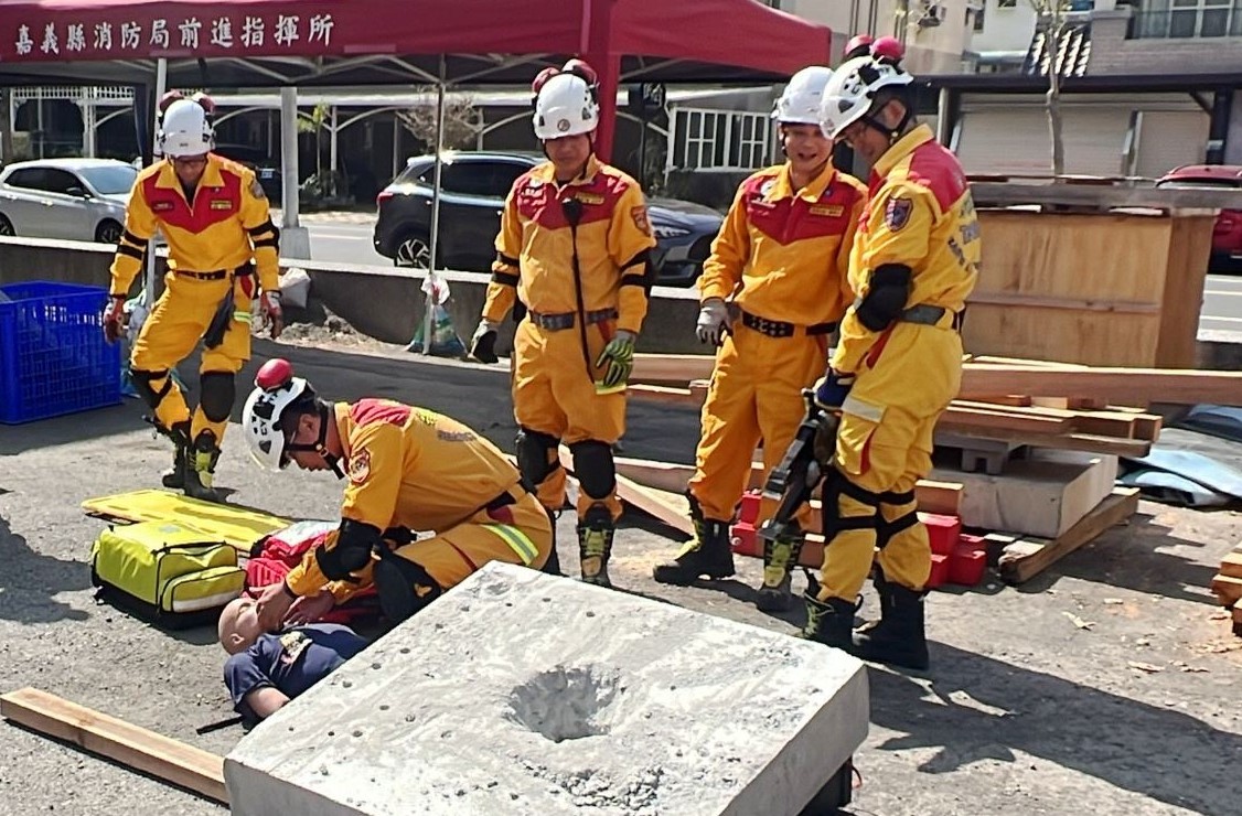 【記者蘇榮泉嘉義報導】為加強防災能力、應變效率,嘉義縣政府25日在消防局舉行113年度災害應變中心動員演練,以半預警、無腳本方式,模擬觸口斷層突發芮氏規模6.8淺層地震、震源深度10公里,震央位於中埔鄉,造成多處建築物倒塌、橋梁毀損、道路斷裂、維生管線破裂和不明氣體外洩等嚴重災情。
