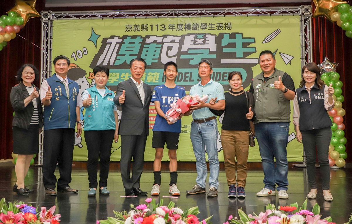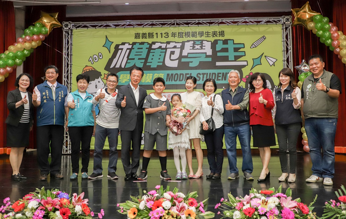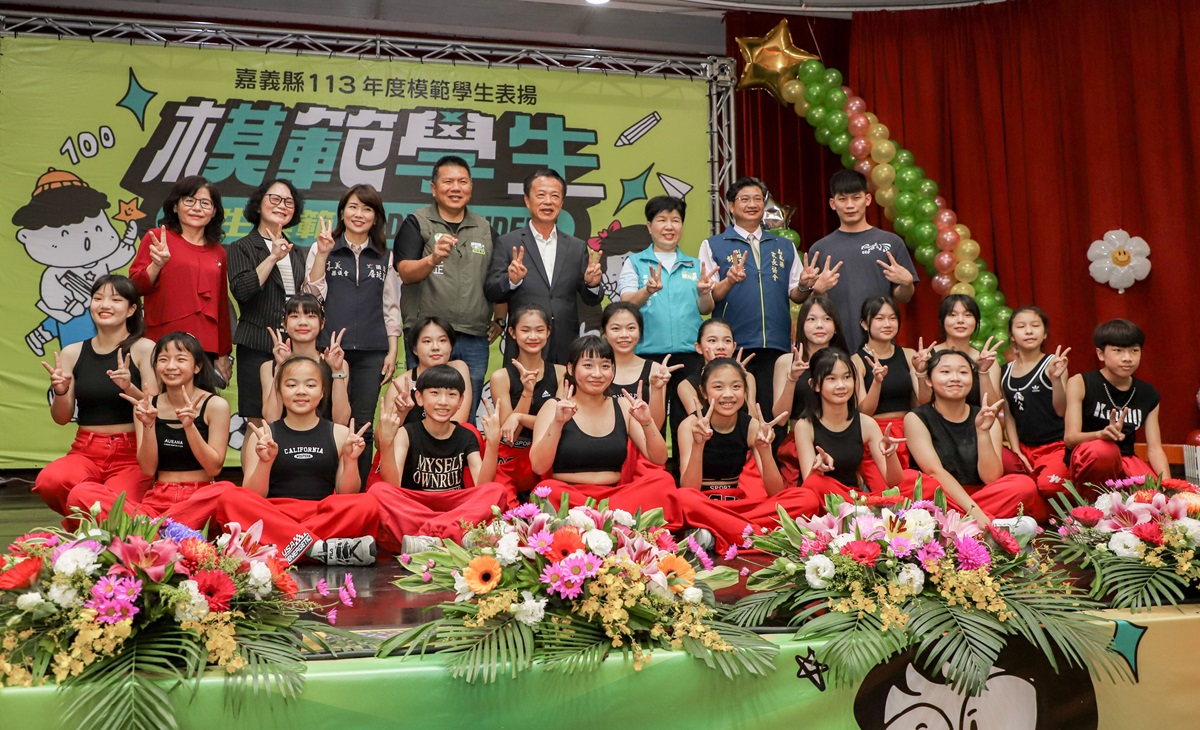 【記者蘇榮泉嘉義報導】今年模範學生表揚主題為「模範學生‧學生模範」,邀請173位受獎學生及家人出席表揚盛會,共同見證光榮時刻。開場由嘉義縣街舞培訓代表隊Hip Hop組別帶來演出,隨後由義竹國中張凱丞,月眉國小吳昇儒及民和國小王澄揚三位模範生分享求學歷程,獲來賓一致好評。嘉義縣長翁章梁親自表揚包含縣立高中2位、國中33位和國小138位,翁章梁在創新學院頒獎表揚及合影留念,並在典禮尾聲為受獎學生簽名勉勵。