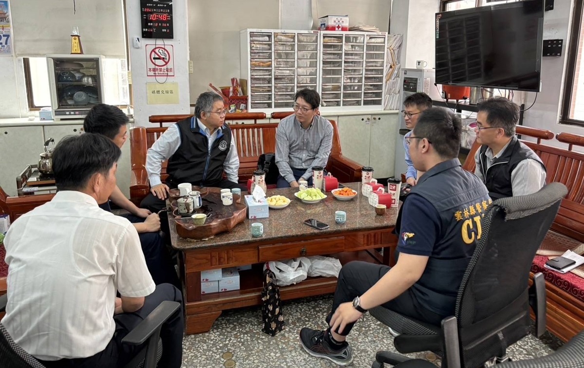地檢署檢察長戴文亮於抽籤號次當日率主任檢察官朱啟仁、檢察官周甫學等人親自至臺西分局麥寮分駐所及橋頭派出所訪視。(圖/記者蘇峰毅攝)