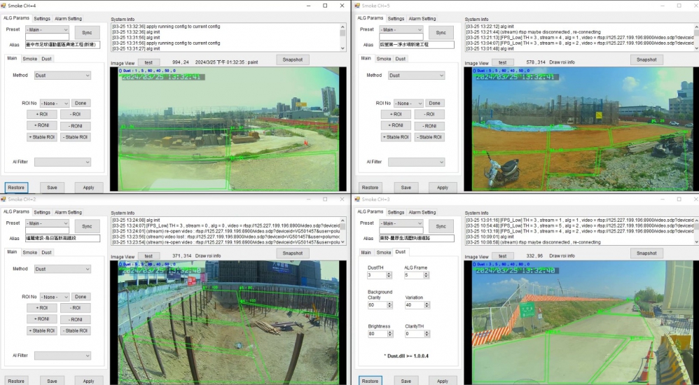 環保局長陳宏益說明,營建工地施工期間若未有效設置防制設施,易造成揚塵污染,為改善營建工地施工揚塵問題,環保局已於多處營建工地設置微型感測器及CCTV,並藉由AI揚塵辨識系統,時時監控施工期間是否有揚塵污染產生,並設置智慧水線;若偵測揚塵疑慮時,則連動智慧水線即時灑水防制,以抑制揚塵污染,較以往透過覆蓋防塵網進行防制,除可減少污染產生的時間、減少人力成本外,在防制效益部分,經過評估至少可提升20%。