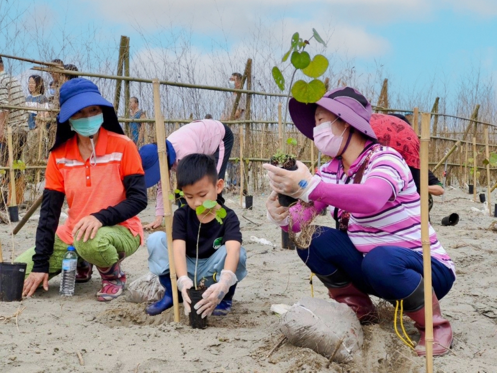 陳美秀指出,感謝當地居民的踴躍參與,以及在地議員與里鄰長的大力支持,去年4月攜手植樹後,今天近百人再以實際行動,公私協力每人種植4株黃槿樹苗,種植面積約720平方公尺範圍,後續會再繼續密植其他海岸原生樹種共計1230株,期透過復育工作,逐漸回復台中海岸林的自然樣貌,實現防風固岸、生態保護和美化環境的目標,同時提升環境品質,建構永續自然生態環境。