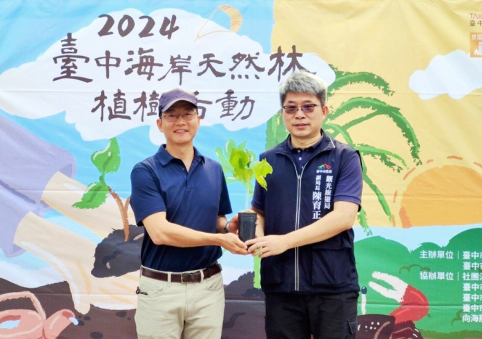 【記者林獻元台中報導】台中市政府觀光旅遊局持續推展觀光築底工作,提升台中海線整體遊憩品質,30日舉辦「2024台中海岸天然林植樹活動」。觀旅局表示,市府攜手與「台灣山林復育協會」合作天然林復育計畫,30日進行植樹和護樹解說,並與近百位在地居民、議員、里長等一起種下海岸第一線防風林黃槿樹苗,共同協力守護家鄉的生活環境與自然資源。