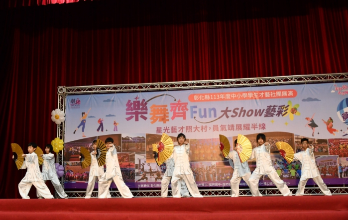 彰化縣中小學生才藝社團展演,今年分區辦理4場,第一場在大村國小登場,學生才藝盡出,精采絕倫,王縣長說,縣府創造舞台,希望孩子一展長才,今年從3月30日至5月25日,分4場次接力展演學生多元才藝和社團學習成果,演出內容有舞蹈、武術、太鼓、儀隊、陶笛、國樂、南北管、管弦樂、運動競技等,場面如同藝文饗宴嘉年華會。