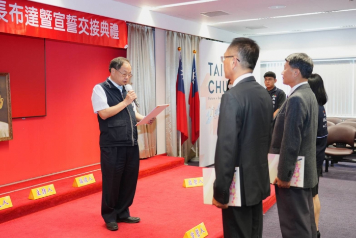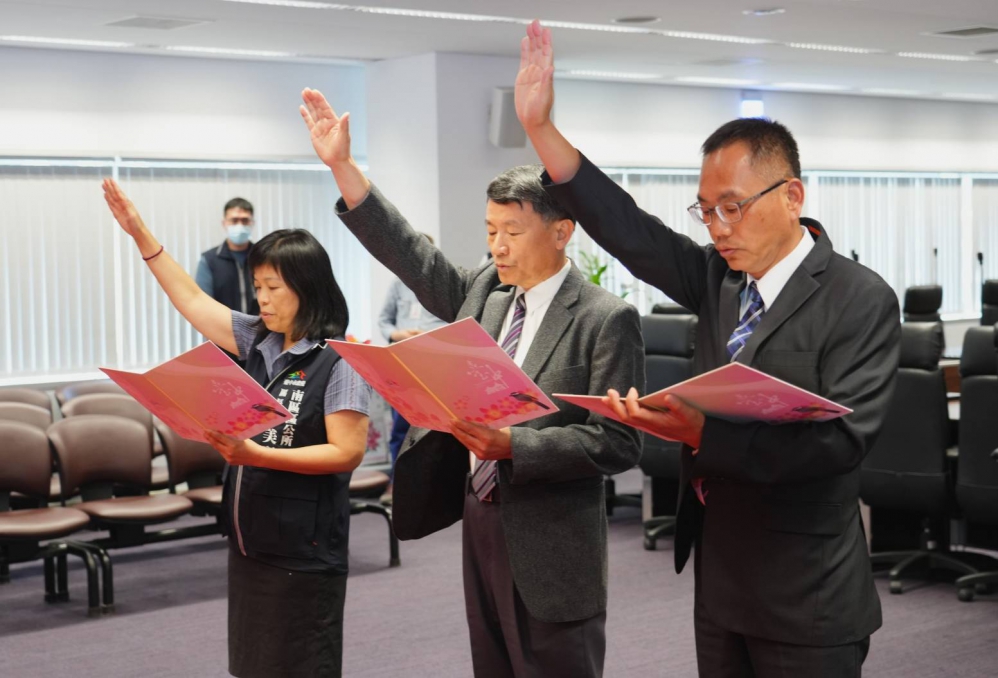 【記者林獻元台中報導】台中市政府1日舉行北屯、南區及霧峰區長布達暨宣誓交接典禮,新任北屯區長由原霧峰區長白峨嵋陞任、南區區長由台中市就業服務處處長李美麗陞任,霧峰區長則由大里區公所主任秘書張慶庸陞任。交接典禮由民政局長吳世瑋代表市長盧秀燕進行監誓,期勉3位新任區長發揮所長,在既有的良好基礎上,帶領公所同仁精進服務,展現團隊全新戰力,再創新猷。