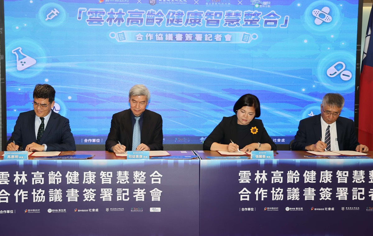 在今日的簽署儀式上,雲林縣長張麗善、財團法人國家衛生研究院院長司徒惠康、國立雲林科技大學校長楊能舒及國立臺灣大學醫學院附設醫院雲林分院院長馬惠明共同簽署「雲林高齡健康智慧整合」合作協議。合作內容包括:推動衛生福利相關研究及臨床試驗,提升衛生福利政策之制定與執行效能;為地方政府提供科學依據,促進地方衛生福利政策之改善和實踐;推廣在地教育與識能,提升社區衛生福利意識與水平,打造高齡友善共生社區;提升智慧科技於研究之技術應用與分析,加強科技創新在衛生福利領域的應用,促進研究成果之技轉效能。