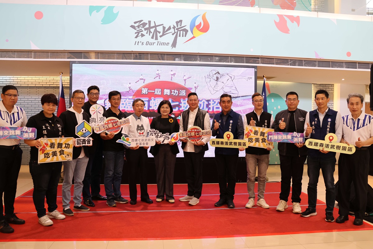【記者蘇榮泉雲林報導】第一屆舞功派「舞臨西螺七崁尬招」將於4月6日雲林西螺森活武樹園區辦理,活動結合傳統武術和現代街舞,讓富有文化歷史的傳統武術和充滿創新的現代街舞相互激盪出新火花,創造出更多新契機及可能性。今日上午縣長張麗善、議長黃凱、西螺七崁武術文教基金會榮譽董事長李明哲、現任董事長丁振源、典亮慈善基金會執行長邱源寶、臺灣多元藝術空間青年發展聯合會(藝青會)理事長馮怡超等共同於雲林縣政府親民大廳召開活動記者會,熱情邀請全國民眾4月6日一起到西螺來尬招。