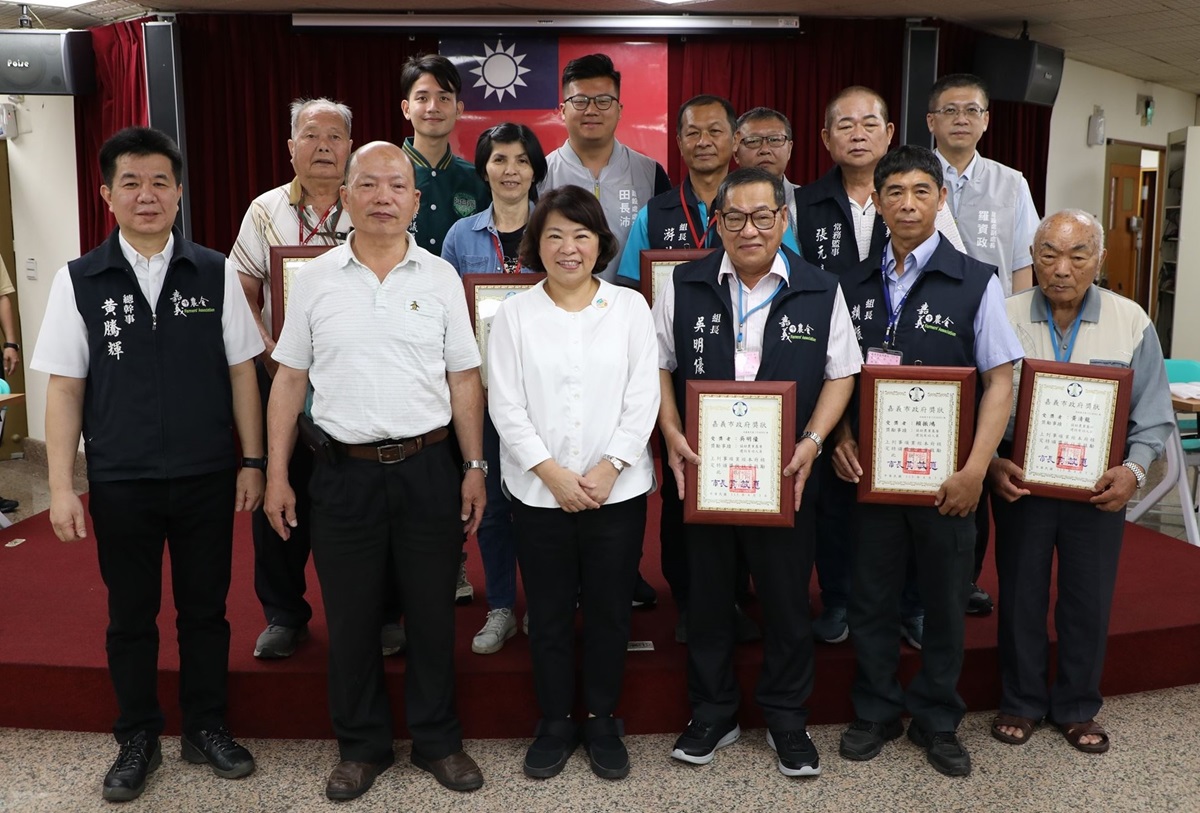 市長黃敏惠頒發獎狀予協助農業基層建設有功人員27名,感謝農民為農業付出的貢獻與辛勞。