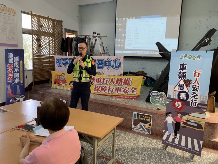 交通組警務佐黃偉哲以近期發生之交通事故案例說明,讓部落長者瞭解遵守交通規則的重要,提醒民眾「勿酒後駕車、不闖紅燈、騎乘機車及電動自行車應配戴安全帽、長輩使用醫療代步車比照行人路權」等用路觀念,另外出應穿著亮色衣服或攜帶燈光、反光閃燈,凸顯自己,以維用路安全。
