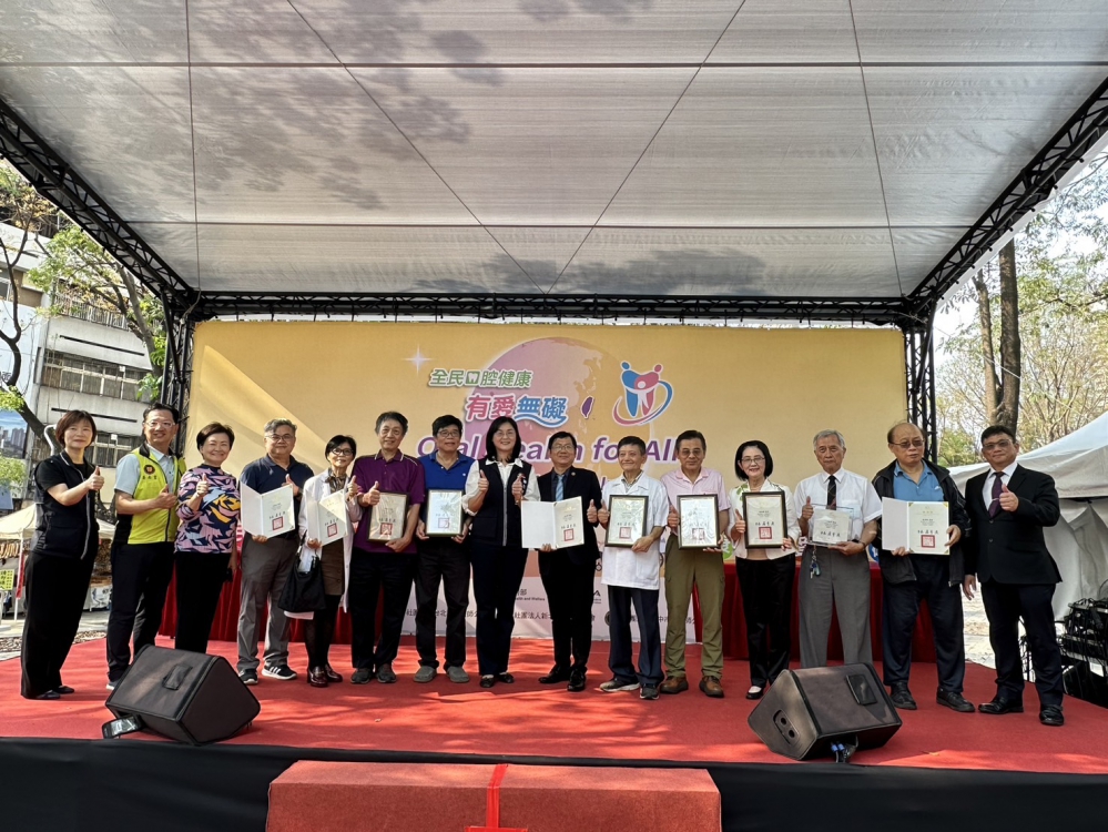 【記者林獻元台中報導】台中市政府衛生局與社團法人台中市牙醫師公會4日於草悟道舉辦「全民口腔健康 有愛無礙 Oral Health For All」活動,透過闖關遊戲和有獎徵答互動,提升民眾口腔保健知能;除結合兒童節推動「口腔健康超人」系列活動,加強宣導兒童應善用口腔預防保健服務及7次兒童預防保健服務外,另頒發資深牙醫師服務滿30年、40年、50年的感謝狀(牌),感謝每位資深牙醫師長期對公共衛生事務的付出,為台中市民口腔健康把關。