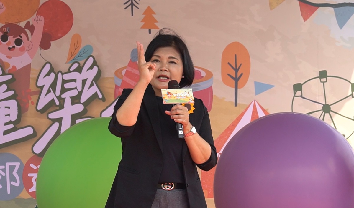 縣長張麗善鼓勵現場年輕爸媽三個小孩不算少,再加一個政府獎勵金更多。