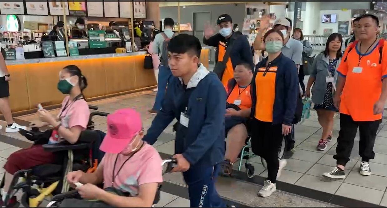 「雲林縣復健青年協進會」的智青朋友在家人的陪伴下,搭乘高鐵到高雄展開一日遊。(記者蘇榮泉攝)