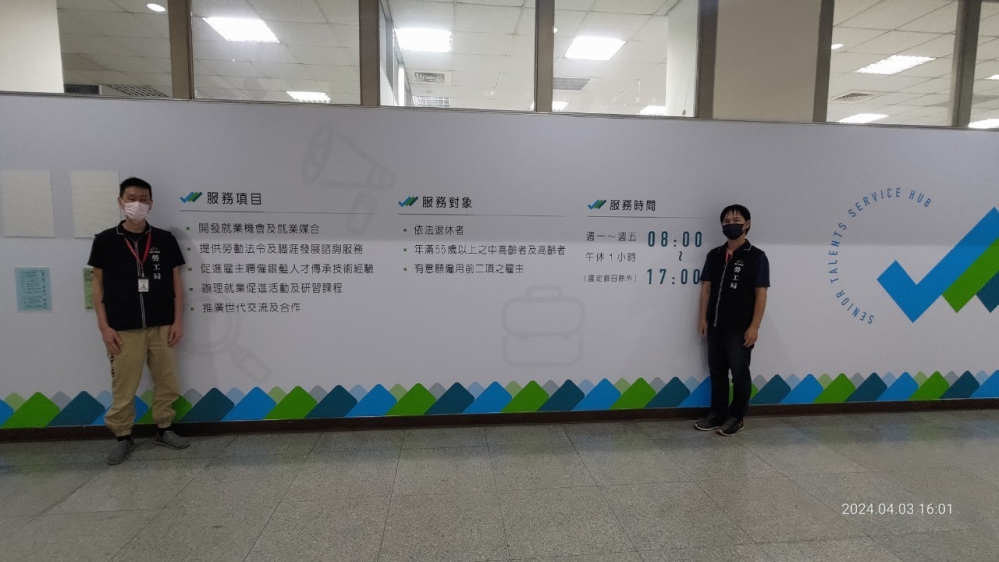 台中市就業服務處說明,山線地區銀髮人才服務據點設有求職求才服務區、就業資訊公告區及職涯諮詢區,配置了4位就業服務員提供求職登記、就業諮詢及職缺推介等服務。同時,就服員積極拜訪轄區內各類友善中高齡企業,開發各類部分工時或彈性工時的職缺,並定期更新公告。