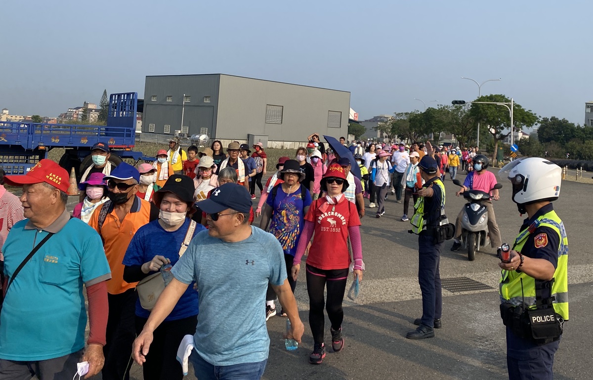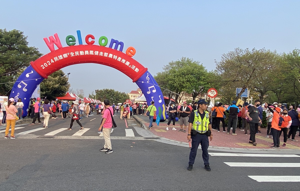 民雄鄉全民動員「鳳」健走暨農特產推廣活動,民雄分局員警協助加強交通疏導維護活動進行安全。