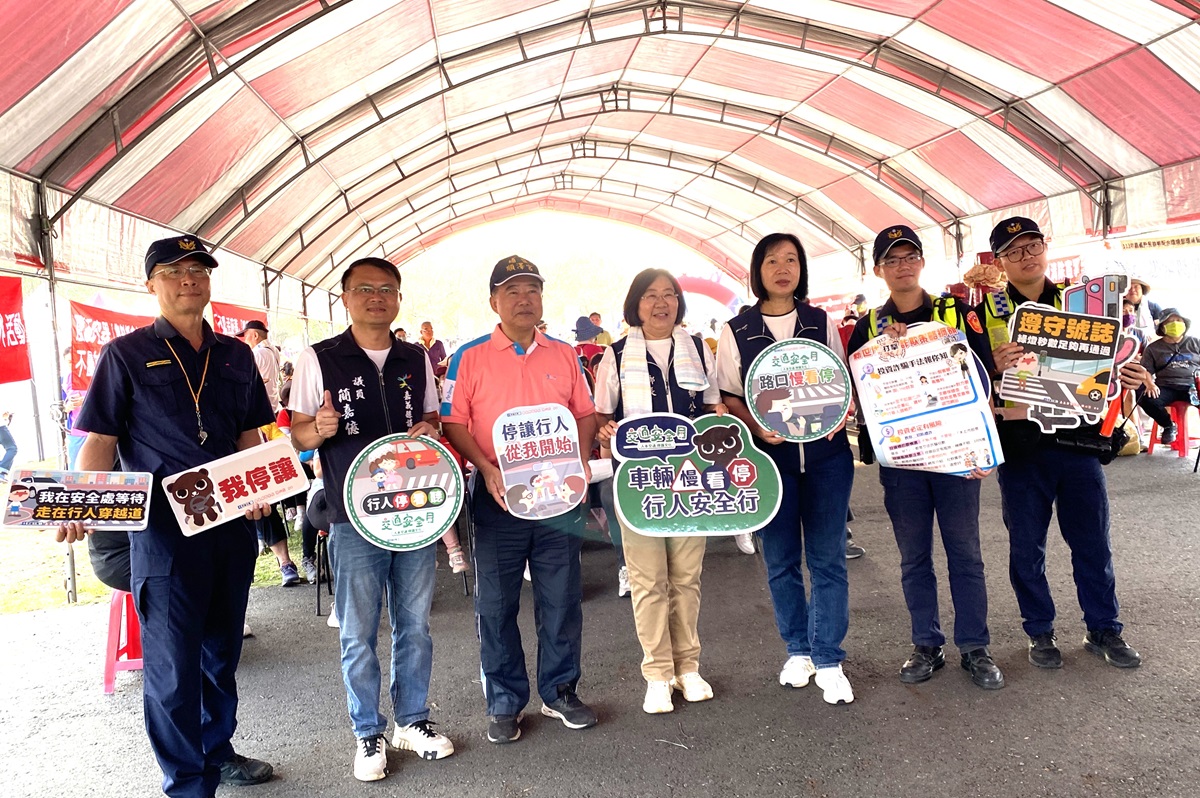 本次宣導活動由民雄分局於活動會場進行交通安全及禮讓行人觀念宣導,呼籲用路人駕駛車輛行經路口、設有行人穿越道(斑馬線)及其他依法可供行人穿越之路口時,務必「停車」讓行人先行通過。車輛駕駛應做到「慢、看、停」:慢-路口放慢速度,看-注意周遭人車,停-停讓行人通過。