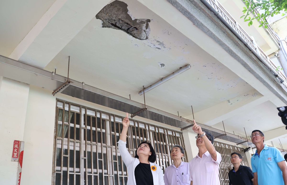 打造安全優質校園環境,張麗善縣長現勘口湖國中歷史建物拆除工程。