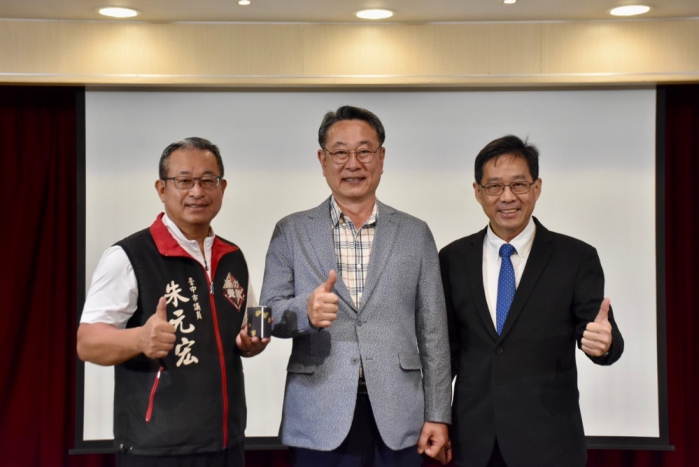 【記者林獻元台中報導】韓國全羅南道光陽灣地區經濟自由區管理局本部長金正玩、韓國汽車零件協會(KAPA) 會長吳秉成經貿考察團一行,18日在台中市議員朱元宏的促成下拜會台中市政府,由市府經濟發展局長張峰源代表接待,雙方互動熱絡,考察團後續也到台中專業水處理大廠康淳科技與中龍鋼鐵參訪,肯定台中產業實力。