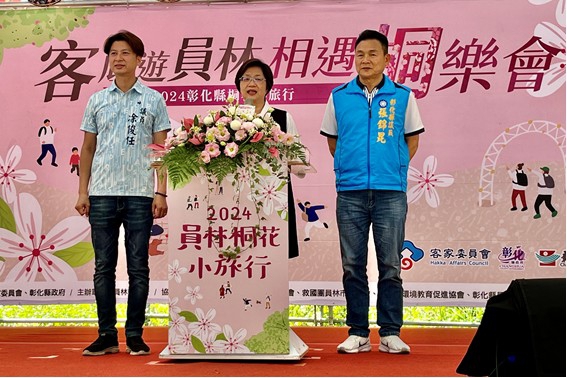 員林分局說,「2024年彰化縣桐花小旅行-客底遊員林相遇桐樂會」,4月21日在員林藤山園開幕,縣長王惠美、立委陳素月、公所主秘賴冠宇、市代會主席張國良等人參加開幕儀式,分局員警把握機會邀王縣長宣導防詐。