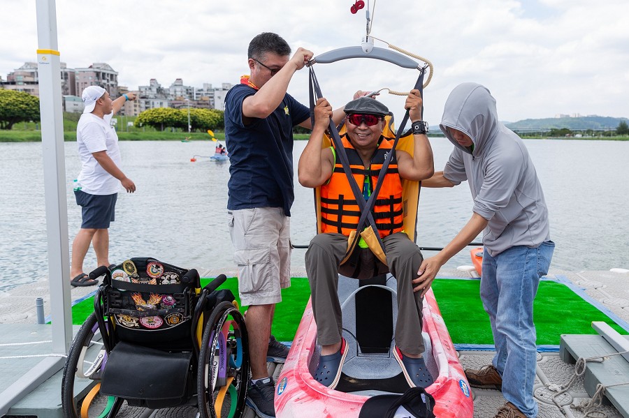 「新北市水域活動體驗營」邁入第12年,今年首度開放親子同樂場次(共6梯次),以2人為1組報名登記,想攜家帶眷的朋友,有親屬關係即可一起報名參加留下美好記憶。去(112)年首開身障獨木舟場次,受到很多回饋,陳小姐說「第一次體驗水上活動,一開始下水很緊張,在教練跟工作人員的指導下,很快抓到技巧,非常好玩!」。今年在蘆洲微風運河的身障獨木舟場次,將依照不同障別開設專屬的場次,共有肢障、聽障、視障與心智障礙等,共計8個專屬場次,依照身障朋友的需求提供更好的服務,像是使用特製的身障專用獨木舟及移位機,讓身障朋友在教練及工作人員的引導下可盡情體驗水上划獨木舟的樂趣。