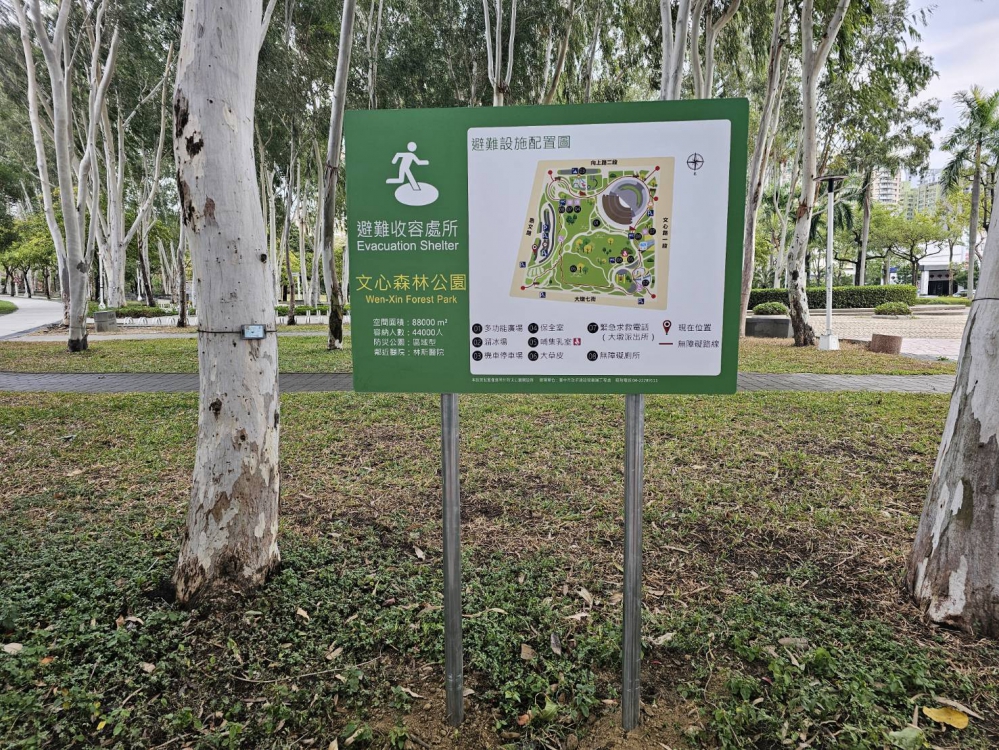 建設局表示,台中市防災公園共計37座,為全市型1座、區域型24座及鄰里型12座,其中112年度完成計6座防災公園,包含東區十全公園、南屯區楓香公園、南屯區文心森林公園、東勢區河濱公園、豐原區葫蘆墩公園、潭子區潭陽公園等,當災害發生時,可提供民眾緊急避難場所。建設局將持續依指引手冊,逐年增加防災公園數量及優化設置相關設施,提供台中市民安全、安心、安居的優質環境。