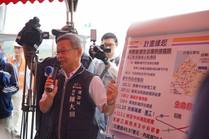 建設局表示,東豐快速道路工程分為5標,其中第4、5標跨大甲溪橋梁、東勢段工程已完工,目前第1至第3標環評爭議已克服,市府為加速提供用路人安全快速的「山城生命救援線」,優先辦理第3標工程,將從石岡銜接至目前已完成東豐快速道路的大甲溪橋梁段及東勢段,提高部分路段道路服務品質,另第1標隧道段已上網公開招標,而第2標也進行設計作業中。